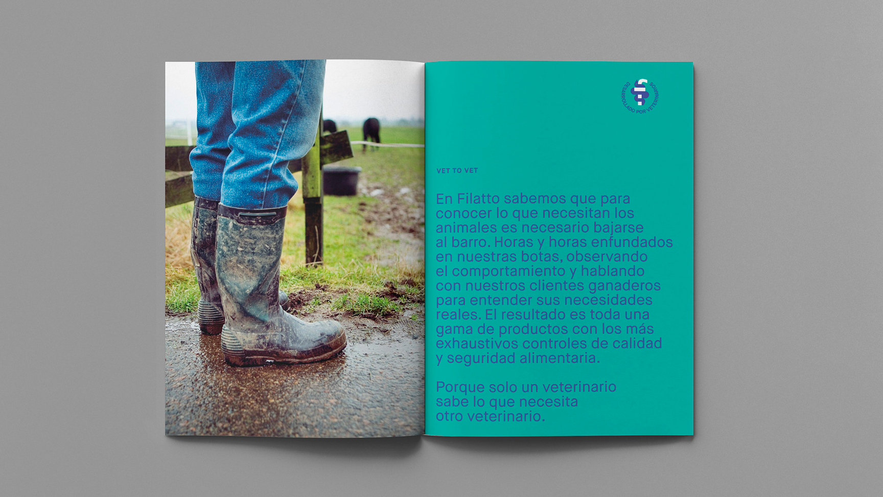 The brand concept is expressed through its slogan "Vet to Vet". Pharmacy made by experts capable of simplifying the complexity of laboratories and offering products focused on solving the daily problems of livestock farms. All in an empathetic style, which humanises the codes of an excessively industrial and aseptic sector.